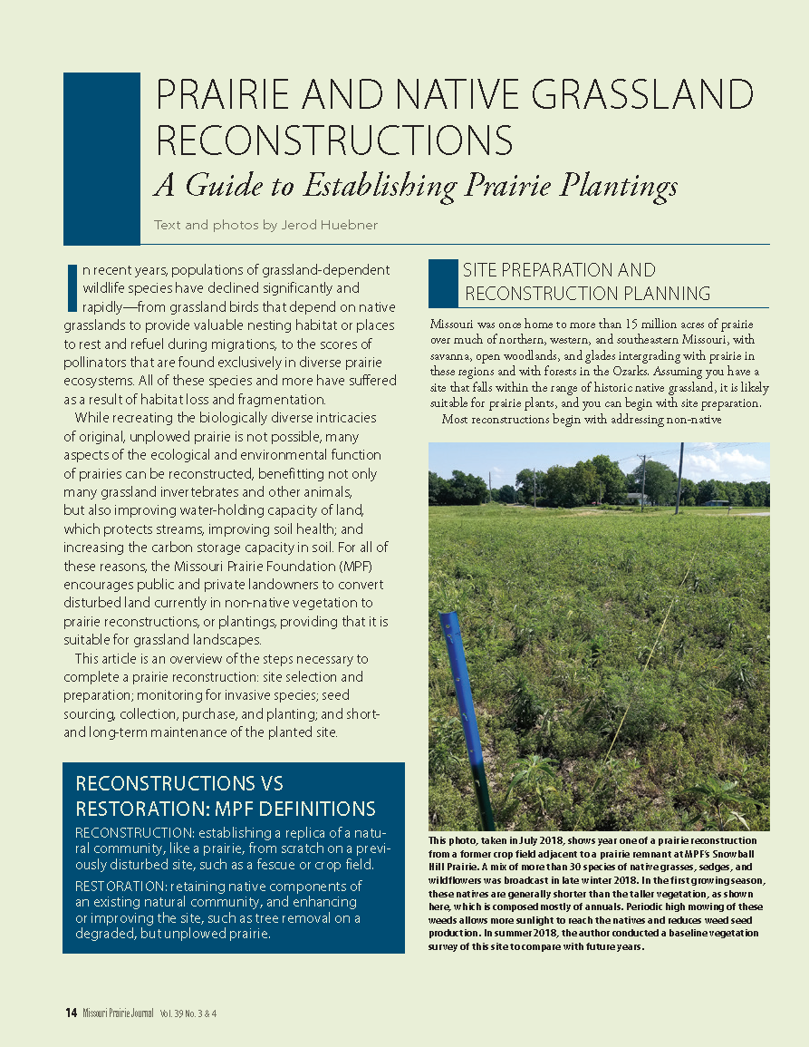 Consult this comprehensive guide from the Missouri Prairie Journal by MPF’s Director of Prairie Management, Jerod Huebner on establishment of prairie plantings.