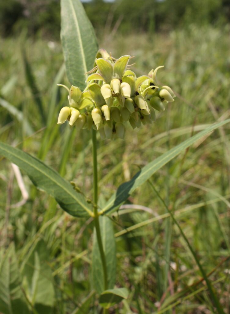 Butterfly milkweed (Asclepias tuberosa) and prairie dock leaves (Silphium terebinthinaceum) growing at Rockhill Prairie. Photo by Bruce Schuette