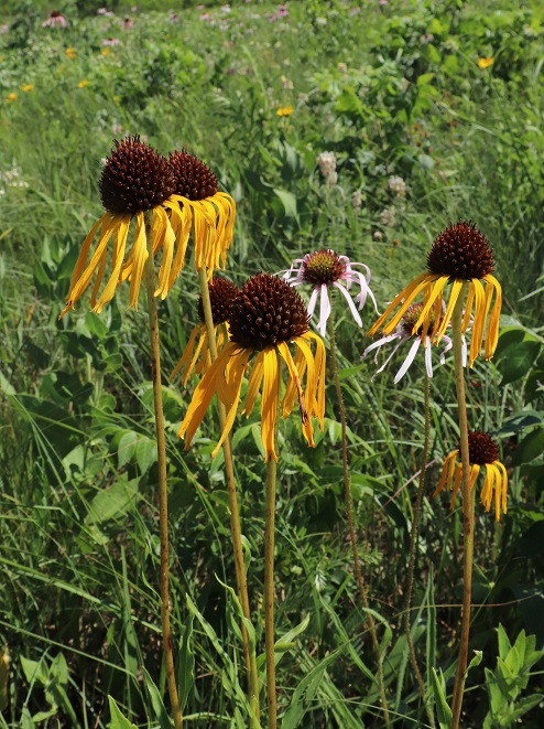 The prairie is considered to be dry-mesic chert prairie (S3) and dry limestone/dolomite prairie (S2). A plant list for the prairie includes 305 native species (339 total species), with an average Coefficient of Conservatism of 4.06 and 34 remnant-dependent plant species, indicating high floristic integrity. The federally listed Mead’s milkweed (Asclepias meadii – G2,S2) occurs here. Rockhill Prairie was identified in a 1984 Natural Areas Inventory and was acquired by The Nature Conservancy in 1988.