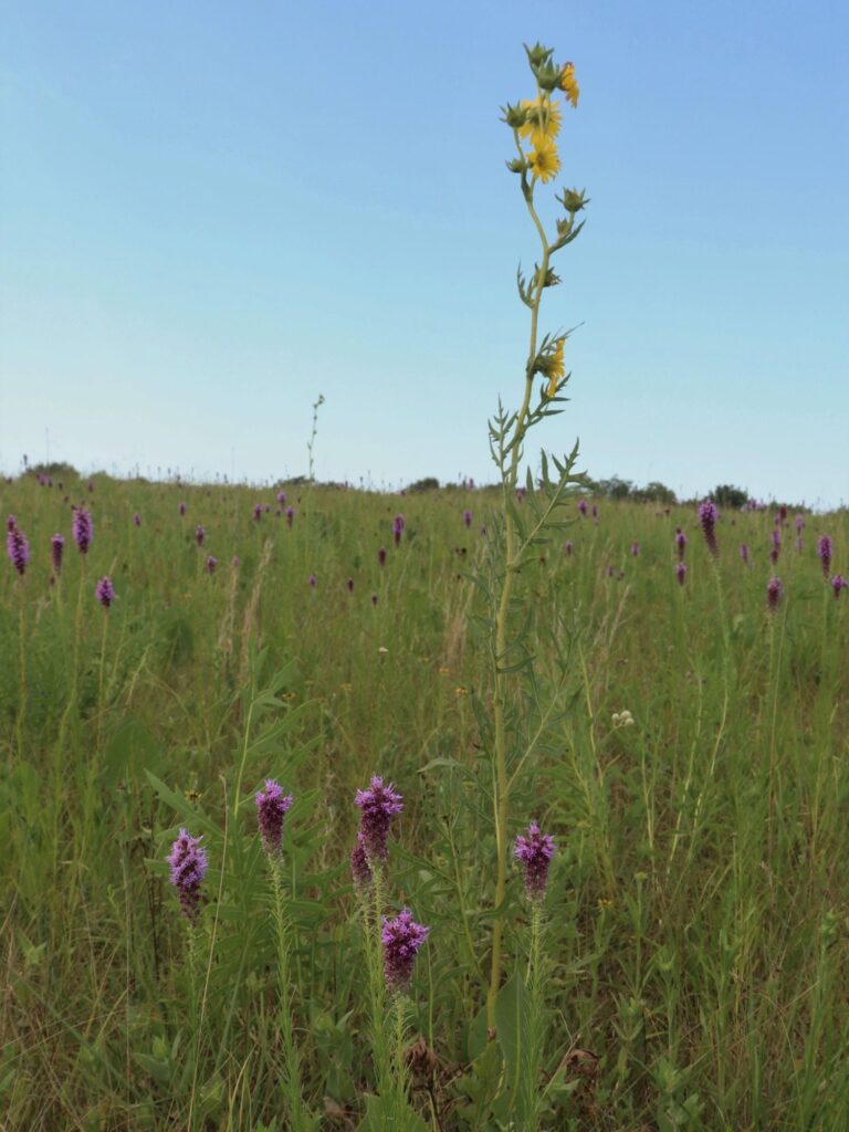 This prairie and MPF’s La Petite Gemme Prairie (4.5 miles to the northwest) are two of the last remaining remnants of the historic “Three Mound (or Mile) Prairie” that stretched 12.5 miles from northwest to southeast in south-central Polk County. This swath of prairie followed the broad upland divide between the Little Sac River on the west and Pomme de Terre River to the east, averaged 1.5 to 2.5 miles in width and included where the town of Bolivar is today. Rick Means, who worked for the Local 101 Hoisting Trust, recognized the special nature of this tract and restored and stewarded this prairie for many years.